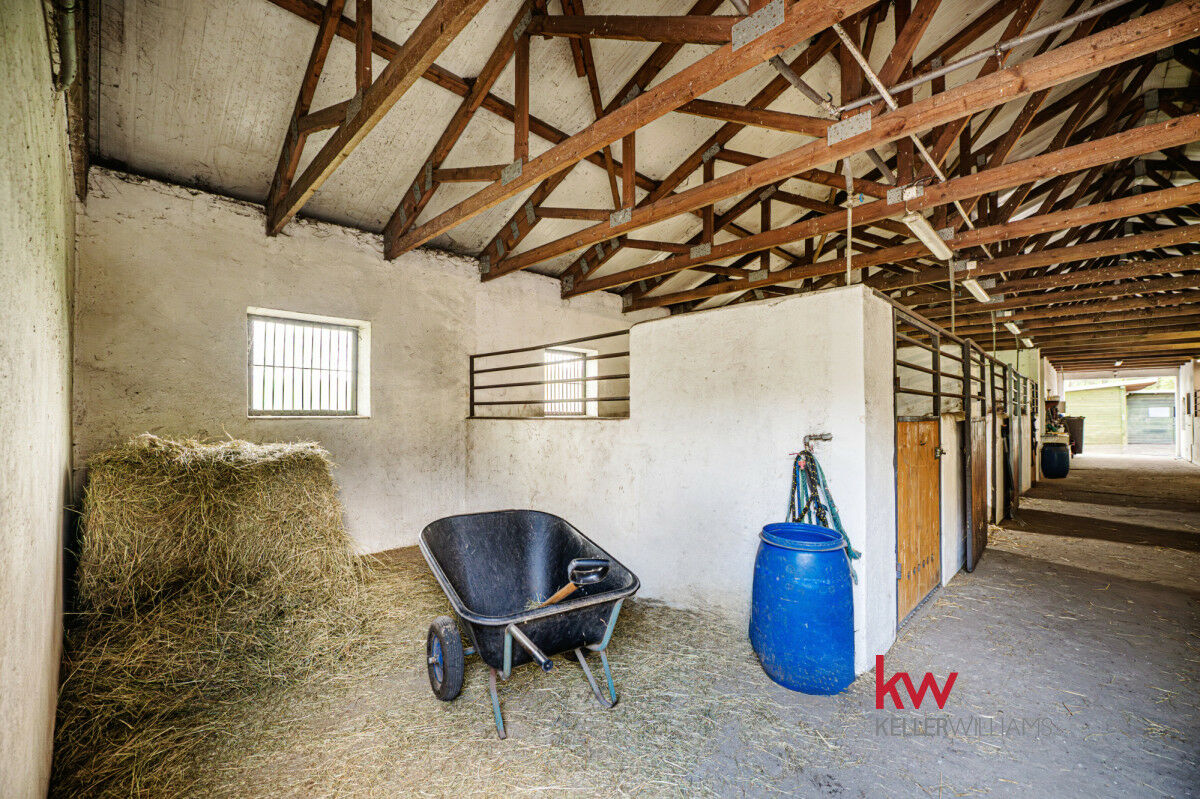 - Stajnia murowana na 12 koni - solidna i funkcjonalna, zapewniająca komfortowe warunki dla koni, z przestronnymi boksami, wentylacją i dostępem do wybiegu. Siodlarnia/apartament z łazienką, myjka dla koni, paszarnia